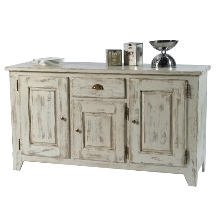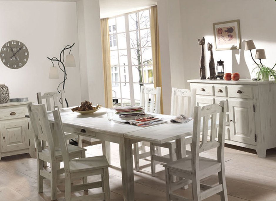 Набор мебели для гостиной SOLEA — притягательное очарование натуральных материалов в элегантном интерьере. Уютная мебель из сосны в деревенском стиле источает тёплое свечение и домашний комфорт. Свежий запах натуральной древесины навевает самые удивительные мысли, здесь нарочитая грубость материала соседствует с изысканностью изделий ручной работы, а старинные элементы декора превосходно вписываются в современный ритм жизни. Комод 31 SOLEA белый с эффектом искусственного старения