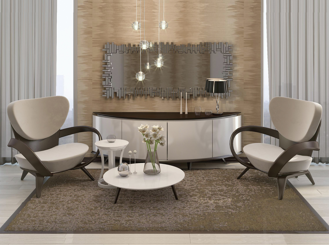 Тумбочка с радиусными фасадами основанием и столешницей из массива дерева.