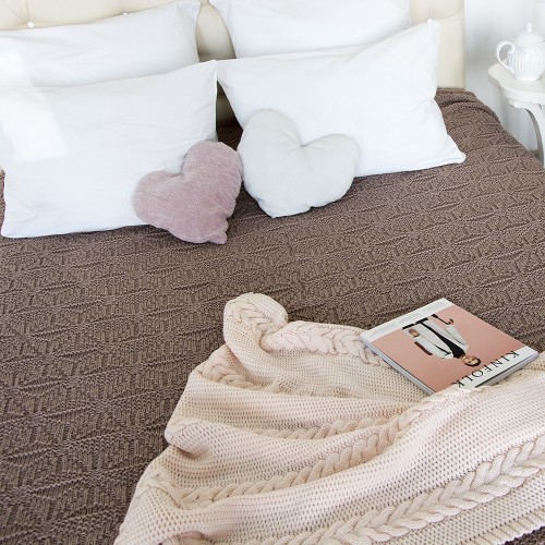 Комплект для спальни - отличный способ обновить интерьер, не делая ремонта и создать нежную атмосферу мягкости и уюта в вашей спальни! Плед крупной вязки, односпальный. С ним каждое утро будет нежнее, а вечера теплее и уютнее. Станет стильным атрибутом для фотосессии, отличным компаньоном в дорогу или неотъемлемой частью пикника на свежем воздухе. Связан из гипоаллергенных материалов, приятно согревает, но отводит лишнее тепло.